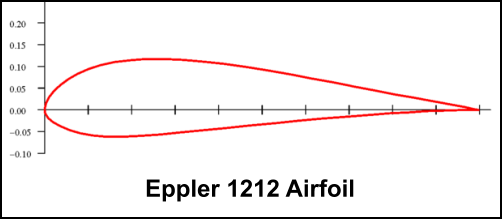 and selected the Eppler 1230 airfoil, which he also modified to reduce pitching moment. The E1230 is a forward loaded, turbulent flow