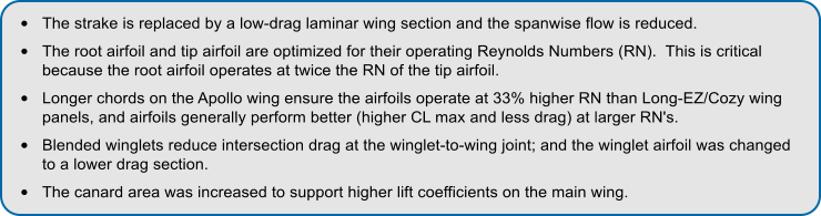 predicts an 8 knot speed increase with the redesigned wing. Additional analysis indicates the Apollo’s stall speed is 4 knots lower
